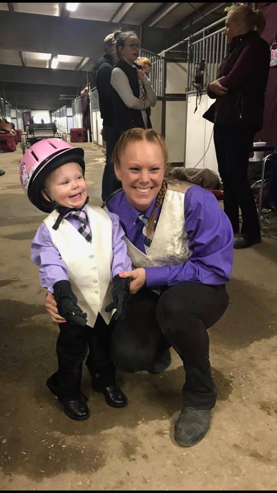 As a child she was often found helping her fellow competitors ready their horses for the show ring. She can still be found in the show ring in her favorite discipline: equitation.